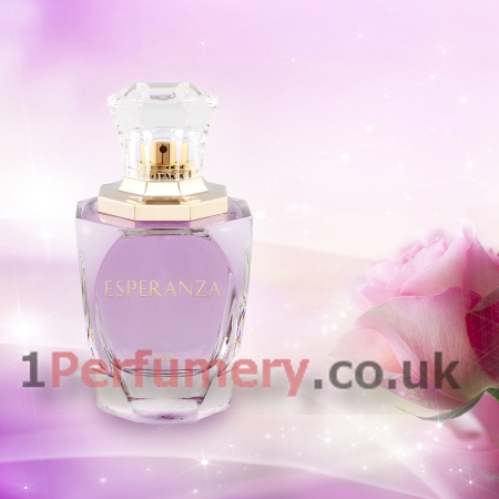 The scent bottle is reminiscent of a waltzer style, radiant under the chandeliers of the ballrooms of Vienna. That reminds us an enchanting place symbol of whirling harmony and absolute osmosis between the woman and her perfume. A flowing sensation, introduces the unique beauty of the scent Esperanza, unveiled by a joyful blend of fruity top notes, like Plum, Blackcurrant and Orange Flower, enhanced by a deeply feminine floral bouquet of Jasmine, Peony, and Violet. White sensual Musk, Amber and Vanilla, bring you closer to a magical world full of hope and dreams.